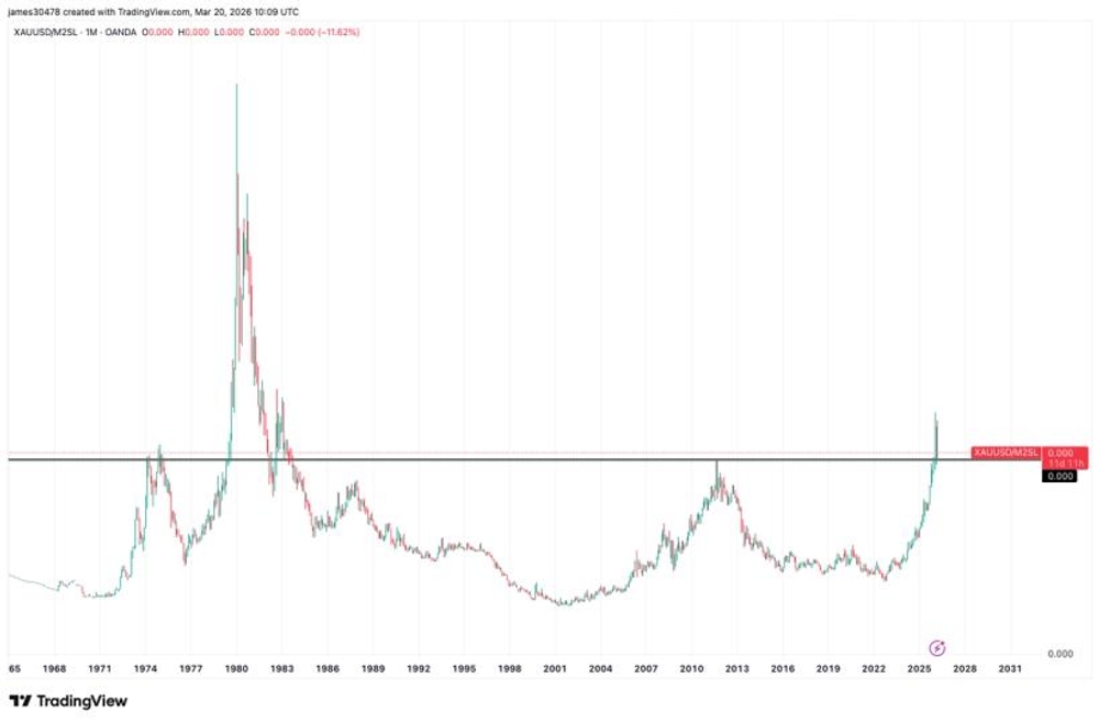 El oro a un paso de un mercado bajista: ¿qué revela la oferta monetaria sobre Bitcoin?