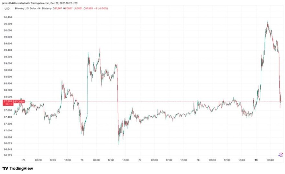 Recientemente, Bitcoin experimentó una reversión significativa, cayendo por debajo de los 88,000 dólares tras haber alcanzado un máximo a principios de la mañana. Esta dramática fluctuación no es un fenómeno aislado, sino parte de un patrón más amplio que refleja la intrínseca volatilidad del mercado de criptomonedas.